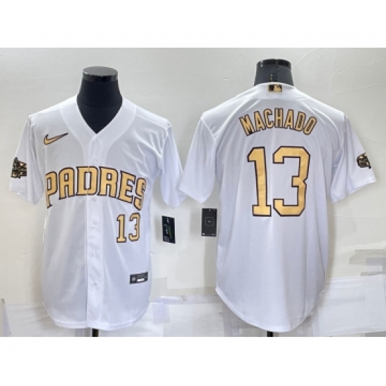 Men's San Diego Padres #13 Manny Machado Number White 2022 All Star Stitched Cool Base Nike Jersey