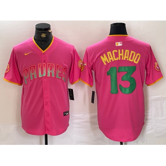 Men's San Diego Padres #13 Manny Machado Pink Cool Base Stitched Baseball Jersey