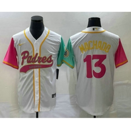 >Men's San Diego Padres #13 Manny Machado White NEW 2023 City Connect Cool Base Stitched Jersey 1