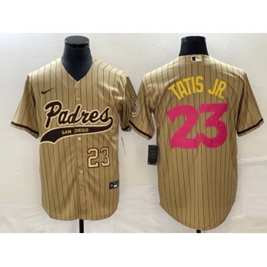 Men's San Diego Padres #23 Fernando Tatis Jr Number Tan NEW 2023 City Connect Cool Base Stitched Jersey