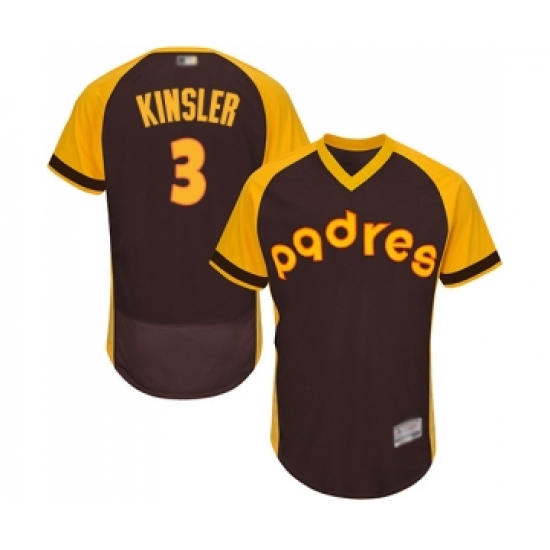 >Men's San Diego Padres #3 Ian Kinsler Brown Alternate Cooperstown Authentic Collection Flex Base Baseball Jersey