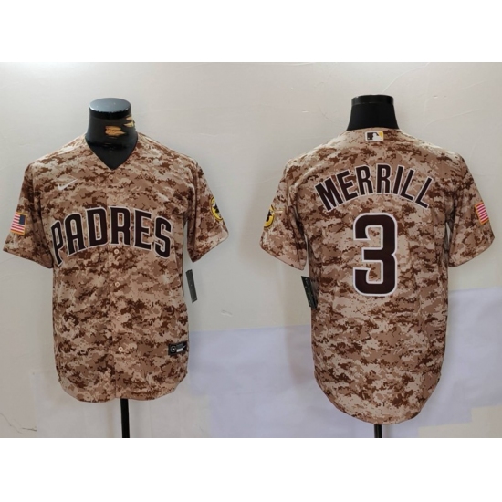 >Men's San Diego Padres #3 Jackson Merrill Camo Cool Base Stitched Jersey