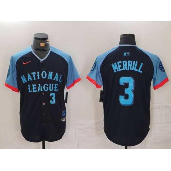 Men's San Diego Padres #3 Jackson Merrill Number Navy 2024 All Star Limited Stitched Jersey