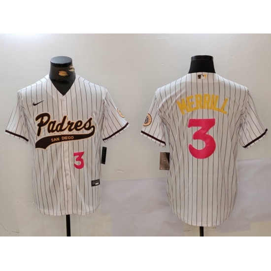 >Men's San Diego Padres #3 Jackson Merrill white Cool Base Stitched Baseball Jerseys