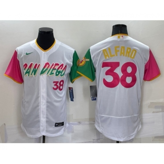 >Men's San Diego Padres #38 Jorge Alfaro Number White 2022 City Connect Flex Base Stitched Jersey