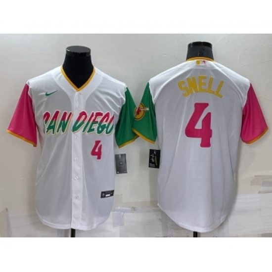>Men's San Diego Padres #4 Blake Snell Number White 2022 City Connect Cool Base Stitched Jersey