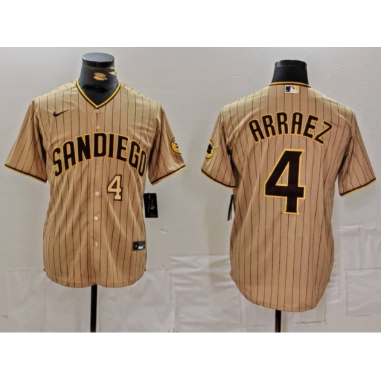 >Men's San Diego Padres #4 Luis Arraez Tan Cool Base Stitched Baseball Jerseys