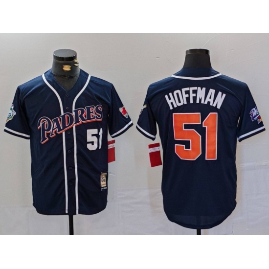 Men's San Diego Padres #51 Trevor Hoffman Navy Player Number Cooperstown Cool Base Jersey