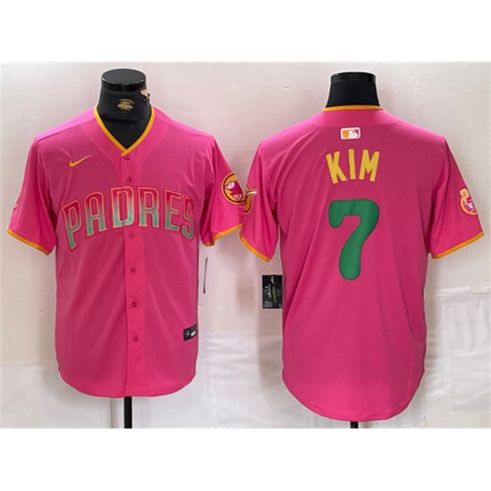 >Men's San Diego Padres #7 Ha-Seong Kim Pink Cool Base Stitched Baseball Jersey