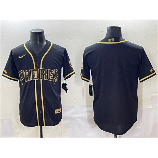 Men's San Diego Padres Blank Black Gold Stitched Baseball Jersey