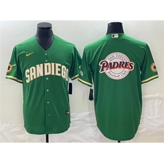 >Men's San Diego Padres Green Team Big Logo Cool Base Stitched Baseball Jersey 001