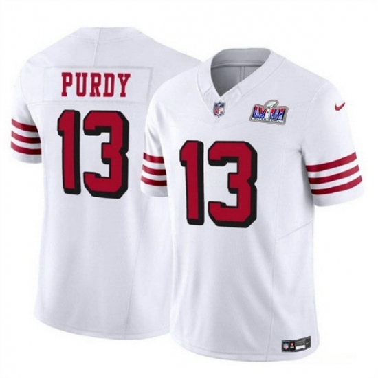 >Men's San Francisco 49ers #13 Brock Purdy 2023 F U S E New White Vapor Untouchable Limited Stitched Football 2024 Super Bowl LVIII Jersey