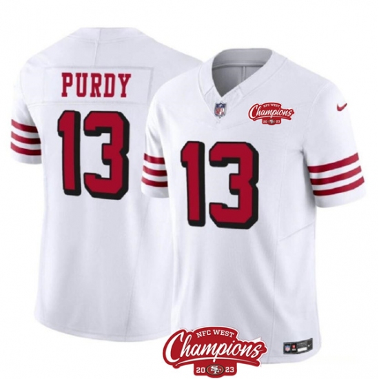 Men's San Francisco 49ers #13 Brock Purdy White 2023 FUSE NFC West Champions Throwback Stitched Jersey