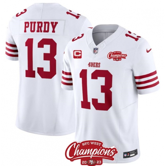 >Men's San Francisco 49ers #13 Brock Purdy White 2023 F.U.S.E. With 1-star C And NFC West Champions Football Stitched Jersey
