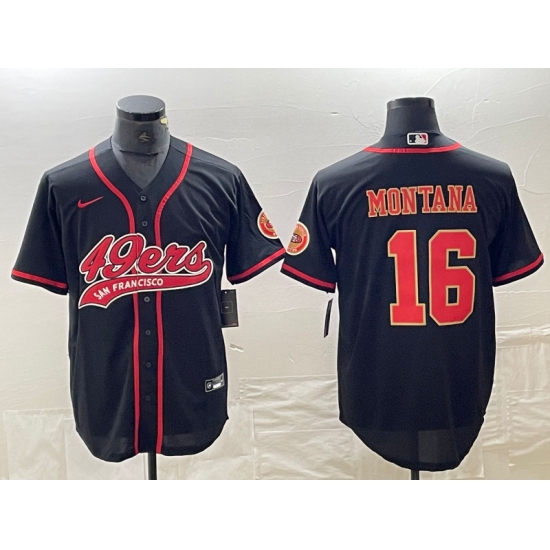Men's San Francisco 49ers #16 Joe Montana Black With Cool Base Stitched Baseball Jerseys