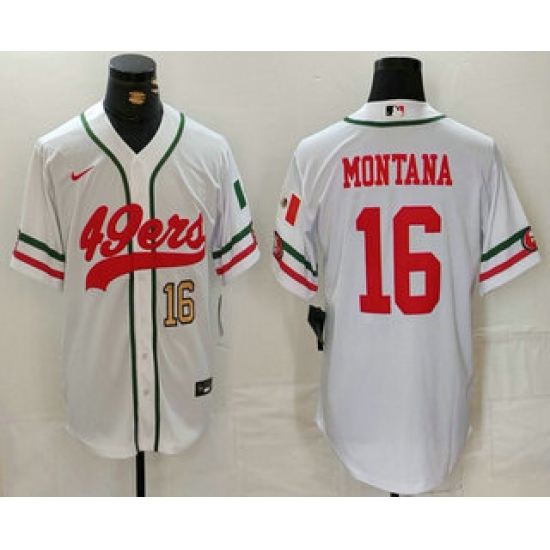 Men's San Francisco 49ers #16 Joe Montana White Mexico Cool Base Stitched Baseball Jersey