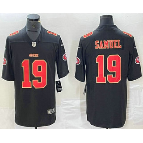 >Men's San Francisco 49ers #19 Deebo Samuel Black Red Fashion Vapor Limited Stitched Jersey