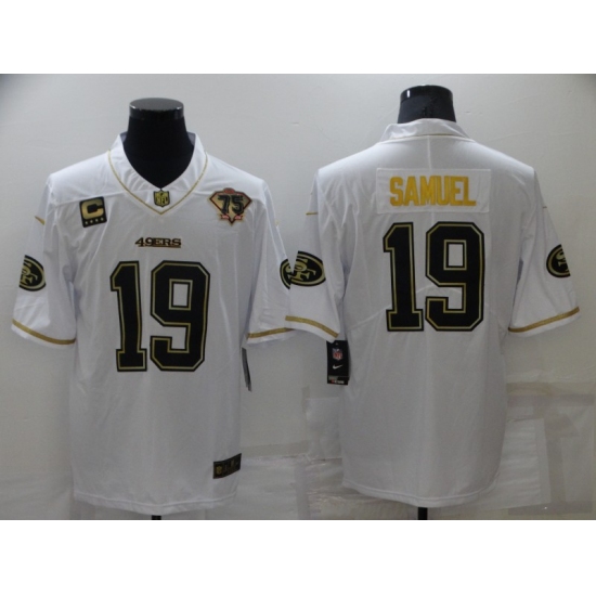 >Men's San Francisco 49ers #19 Deebo Samuel Nike White-Gold Limited Throwback Jersey