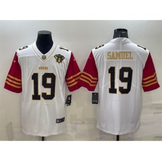 >Men's San Francisco 49ers #19 Deebo Samuel White Gold Edition With 75TH Patch Limited Stitched Football Jersey