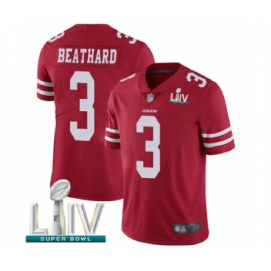 >Men's San Francisco 49ers #3 C. J. Beathard Red Team Color Vapor Untouchable Limited Player Super Bowl LIV Bound Football Jersey