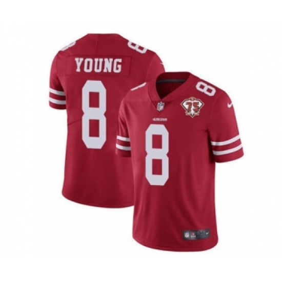 >Men's San Francisco 49ers #8 Steve Young Red 2021 75th Anniversary Vapor Untouchable Limited Jersey