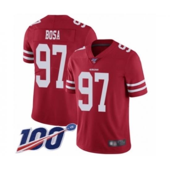 Men's San Francisco 49ers #97 Nick Bosa Red Team Color Vapor Untouchable Limited Player 100th Season Football Jersey