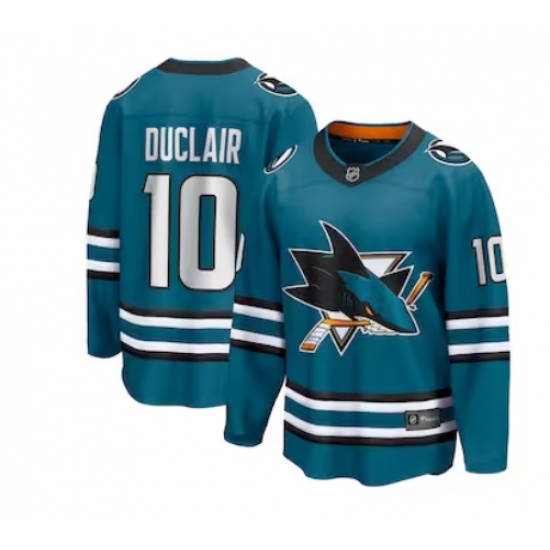 >Men's San Jose Sharks #10 Anthony Duclair Fanatics Branded Teal Home Breakaway Jersey