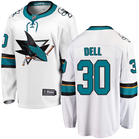 Home>NHL>San Jose Sharks>Aaron Dell>Men's San Jose Sharks #30 Aaron Dell Fanatics Branded White Away Breakaway NHL Jersey