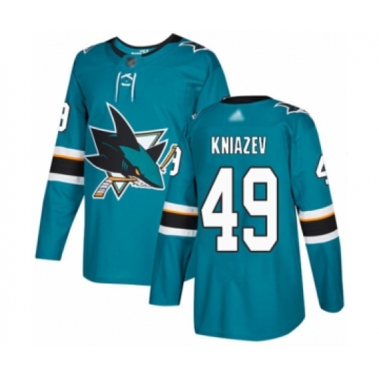 >Men's San Jose Sharks #49 Artemi Kniazev Authentic Teal Green Home Hockey Jersey