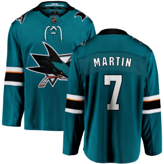 Home>NHL>San Jose Sharks>Paul Martin>Men's San Jose Sharks #7 Paul Martin Fanatics Branded Teal Green Home Breakaway NHL Jersey