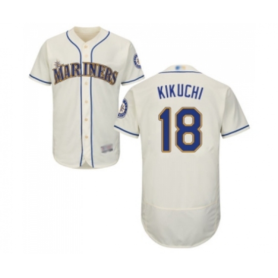 >Men's Seattle Mariners #18 Yusei Kikuchi Cream Alternate Flex Base Authentic Collection Baseball Jersey