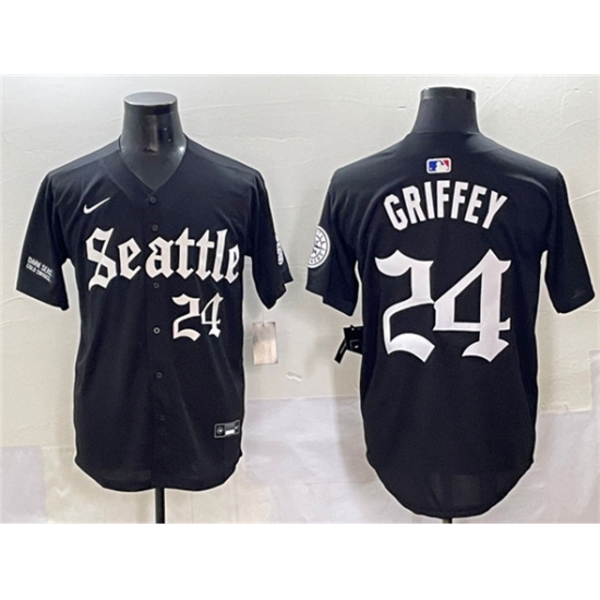 Men's Seattle Mariners #24 Ken Griffey Jr. Black 'Deep Sea Gothic Edition' Vapor Premier Limited Stitched Baseball Jersey