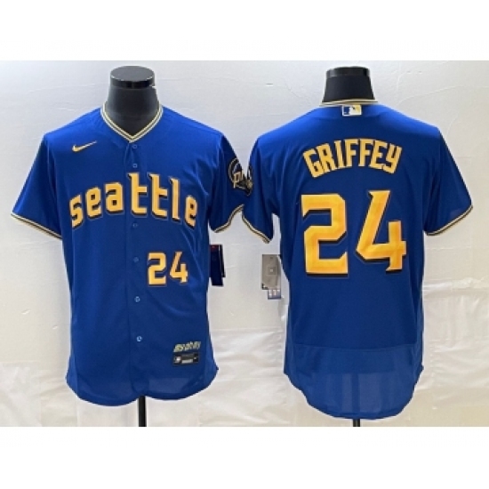 Men's Seattle Mariners #24 Ken Griffey Number Blue 2023 City Connect Flex Base Stitched Jersey 1