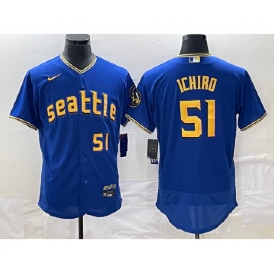 Men's Seattle Mariners #51 Ichiro Suzuki Number Blue 2023 City Connect Flex Base Stitched Jersey 1