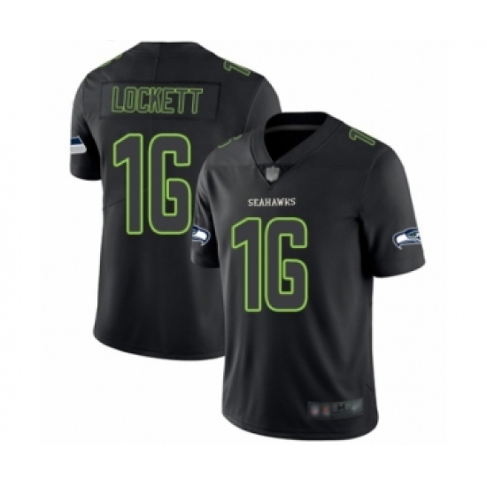 >Men's Seattle Seahawks #16 Tyler Lockett Limited Black Rush Impact Football Jersey