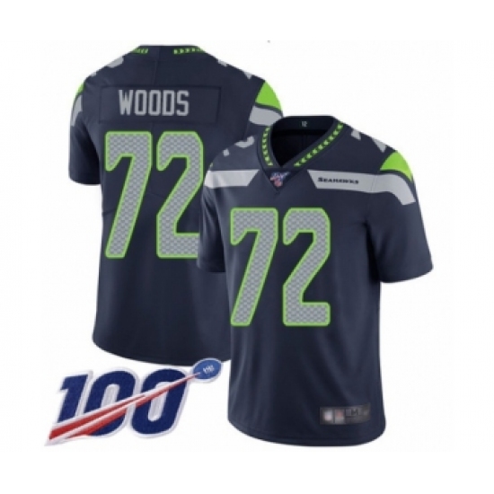 Men's Seattle Seahawks #72 Al Woods Navy Blue Team Color Vapor Untouchable Limited Player 100th Season Football Jersey