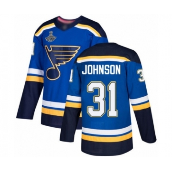 >Men's St. Louis Blues #31 Chad Johnson Authentic Royal Blue Home 2019 Stanley Cup Champions Hockey Jersey
