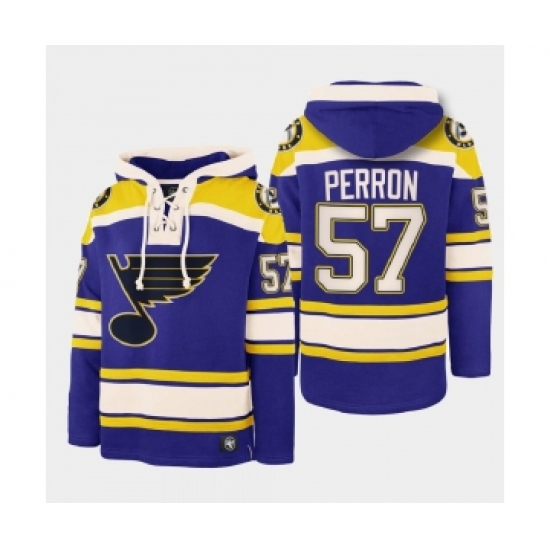 Men's St. Louis Blues #57 David Perron Blue Ageless Must-Have Lace-Up Pullover Hoodie