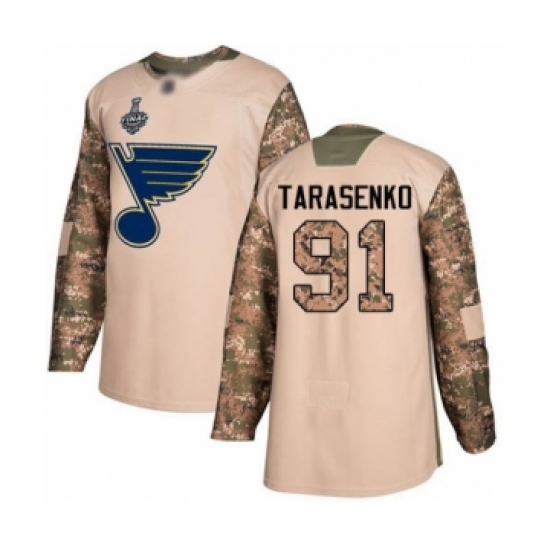 Men's St. Louis Blues #91 Vladimir Tarasenko Authentic Camo Veterans Day Practice 2019 Stanley Cup Champions Hockey Jersey