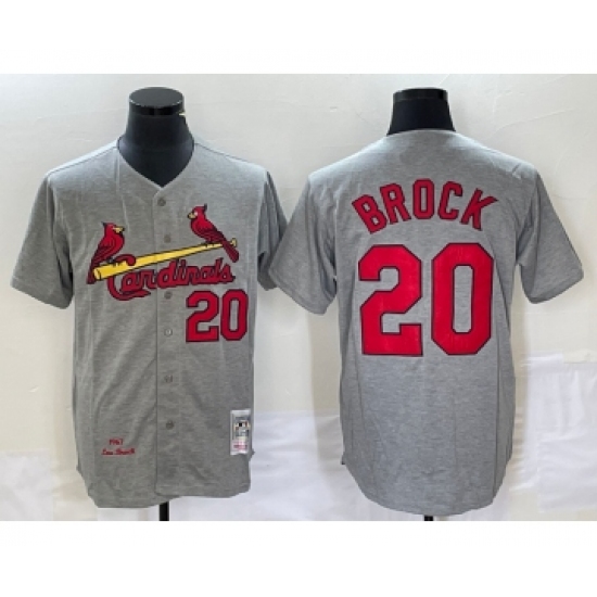 Men's St Louis Cardinals #20 Lou Brock Grey Wool Stitched Throwback Jersey