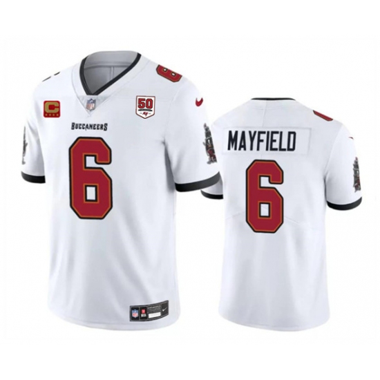 Men's Tampa Bay Buccaneers #6 Baker Mayfield White F.U.S.E. 50th Season & 4-Star C Vapor Limited Football Stitched Jersey