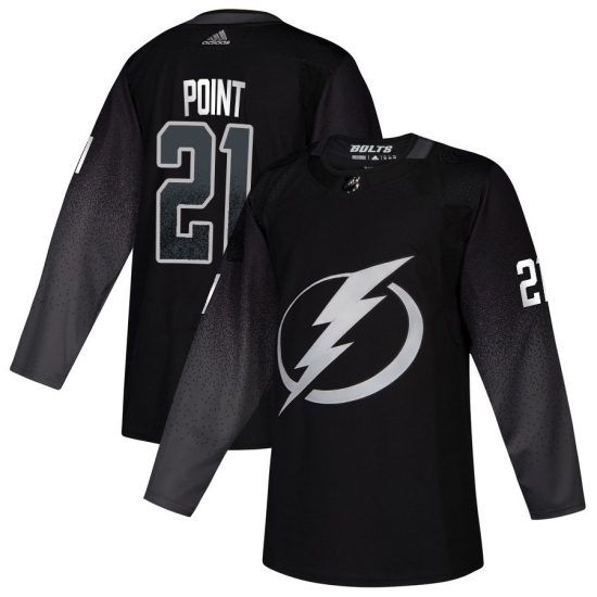 >Men's Tampa Bay Lightning #21 Brayden Point adidas Alternate Authentic Player Jersey Black