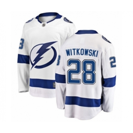 Men's Tampa Bay Lightning #28 Luke Witkowski Fanatics Branded White Away Breakaway Hockey Jersey