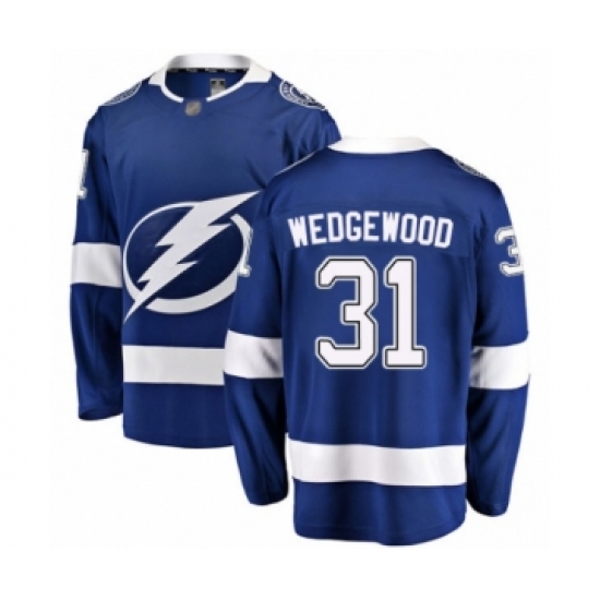 >Men's Tampa Bay Lightning #31 Scott Wedgewood Fanatics Branded Blue Home Breakaway Hockey Jersey