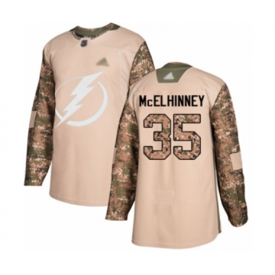 >Men's Tampa Bay Lightning #35 Curtis McElhinney Authentic Camo Veterans Day Practice Hockey Jersey