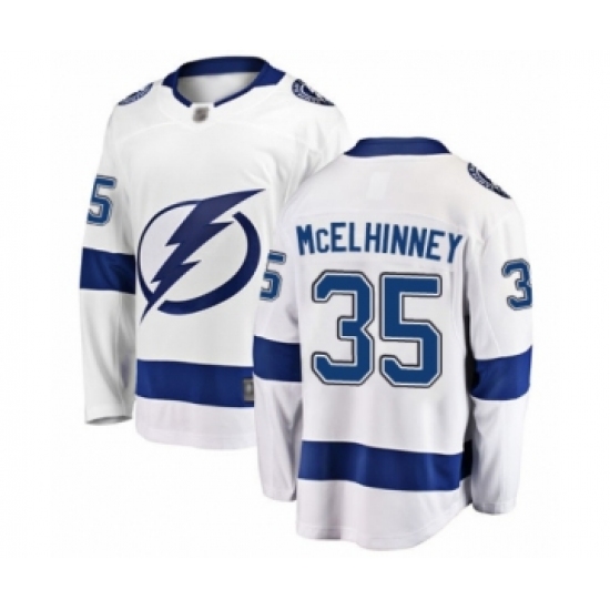 Men's Tampa Bay Lightning #35 Curtis McElhinney Fanatics Branded White Away Breakaway Hockey Jersey