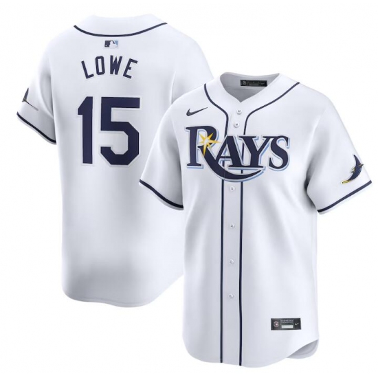 >Men's Tampa Bay Rays #15 Josh Lowe White Home Limited Stitched Baseball Jersey