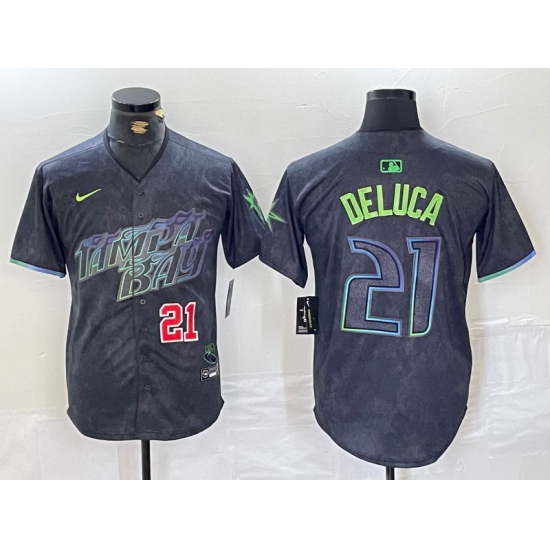 Men's Tampa Bay Rays #21 Jonny DeLuca Charcoal 2024 City Connect Limited Stitched Jersey