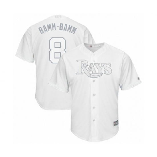 >Men's Tampa Bay Rays #8 Brandon Lowe Bamm-Bamm Authentic White 2019 Players Weekend Baseball Jersey