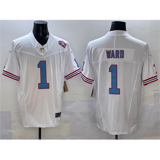 Men's Tennessee Titans #1 Cameron Ward White 2025 Draft F.U.S.E. 1997 Throwback Vapor Limited Football Stitched Jersey